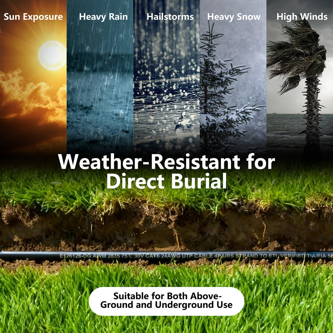 - Direct Burial and Waterproof: Designed for outdoor use, our cable is direct burial-ready and features a waterproof, UV-resistant jacket, providing durability in any weather condition.